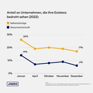 Immerhin ist der Anteil der in ihrer Existenz bedrohten "Kleinen" mit 16,7 Prozent weiter abnehmend. Vor einem Jahr betrug der Anteil noch 24,9 Prozent. Nach wie vor liegt die wahrgenommene Bedrohung aber weit höher als in der Gesamtwirtschaft (6,3 Prozent).