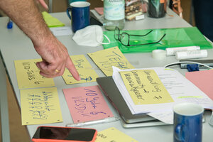 Nach einer mittäglichen Snackpause startete der zweite Teil der Zusammenkunft – das Barcamp mit aktiven Mitgliedern. Wir bestimmten zunächst sechs Themenbereiche, über die wir uns in kleineren Gruppen austauschen wollten. Jeder der Teilnehmenden konnte sich für drei Themen entscheiden, die er oder sie vertiefen wollte.